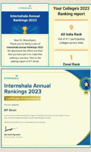 Internshala annual ranking has been given on the basis of internship record across the country. Over 400 engineering colleges in the country had participated in it. BIT Sindri had also got the top rank in the 2022 Internshala Annual College ranking among East Zone engineering colleges.