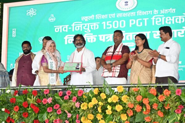Ranchi, July 12: Chief Minister Hemant Soren today handed over appointment letters to 1500 newly appointed post-graduate trained (PGT) teachers at a function held at Prabhat Tara ground.