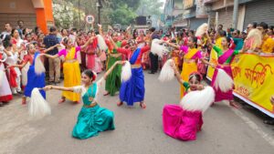 Dhanbad, April 14: Bengali Kalyan Samite on Sunday celebrated Poila Baisakh (their New Year) by taking out an attractive Prabhat Pheri in the coal city and organizing cultural programmes.