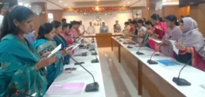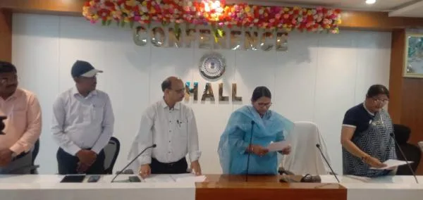 Earlier in the day, divisional commissioner Kumud Sahay administered the oath of office and secrecy to Mayor Aruna Shankar, who begins her second term as mayor of Medininagar.