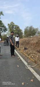 The snake appeared injured, possibly after being hit by a vehicle. It was safely rescued and released into a nearby water ditch by the forest team.